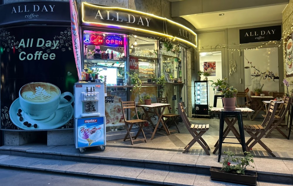 Az All Day Coffee egy bájos kis kávézó Budapest szívében, ahol a hangulatos környezet és a figyelmes kiszolgálás azonnal megnyeri a látogatók szívét. A kávé különleges, az eszpresszók és cappuccinók tökéletesek, míg a hongkongi tejes tea igazi kuriózum, amit nem érdemes kihagyni. A hely otthonos légkörét a barátságos és kedves személyzet adja, különösen a tulajdonos, aki mindig mosolygósan fogadja vendégeit, így a hely egy igazi felfedezés a város forgatagában.