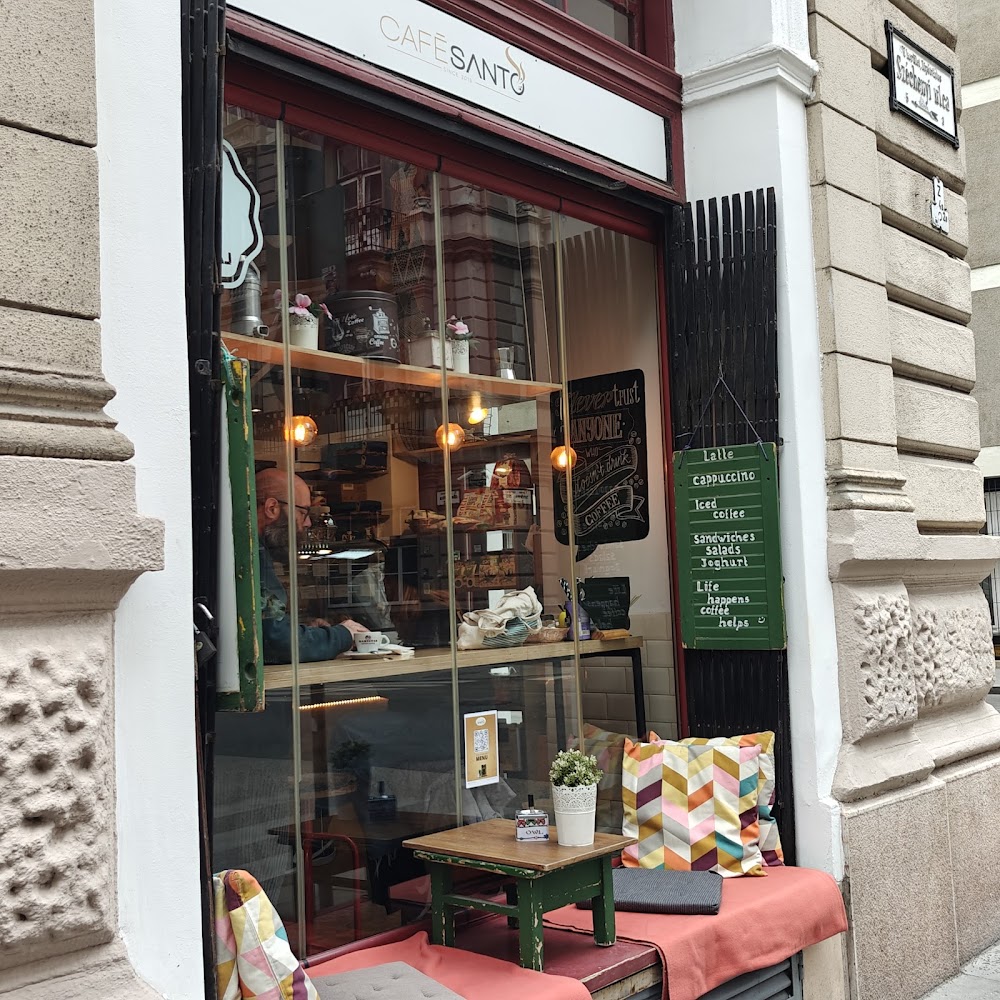 A Café Santo egy bájos, kis kávézó, mely Budapest szívében, a parlamenthez közel rejtőzik. A hely maga egy igazi oázis a városi nyüzsgésben: a belső tér meghitt, a külső terasz pedig tökéletes egy kellemes kávézáshoz. A személyzet minden vendéget mosolygósan üdvözöl, és kiváló kávéval, valamint házi süteményekkel kényezteti őket. A kávé, amely itt kapható, több alkalommal is kiemelésre került – finom, erőteljes ízvilágú, és tökéletesen elkészített. A sütemények is magas színvonalat képviselnek, különösen a csokoládés és a kókuszos variációk.