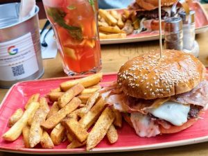A konyha erőssége a részletekben is tetten érhető: jól temperált cheddar, arányos fűszerezés, roppanós, illatosan fűszerezett krumpli – amikor minden a helyén van, a tányér egységesen szól. A belső tér hangulata fiatalos, a személyzet figyelmes, külön kérésekre is rugalmasan reagálnak.